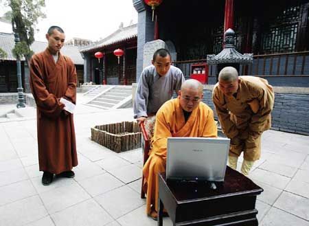 正在上网的少林寺僧,使用电脑者为方丈释永信