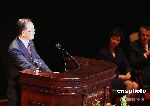 中国总理温家宝23日在纽约出席美国友好团体午宴并发表演讲。