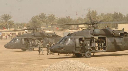 | 美军方称驻伊美军两架“黑鹰”直升机4日晚间在伊拉克首都巴格达北部一个基地降落时相撞坠毁。 |