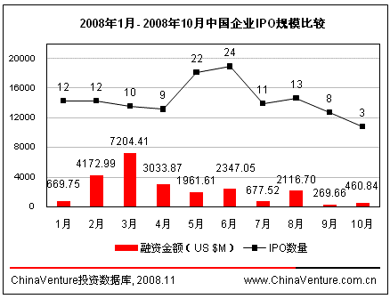10月,国外资本市场一片低迷,市场需求疲软、投资者信心不断降低、证券市场恶性下跌等因素使得IPO市场几近枯竭。美股IPO数量连续10周为零,创造28年来最差记录,这使得中国企业海外上市受阻。而国内资本市场,自9月起证监会对于新股发行审批的节奏明显放缓,以至于10月A股市场更是进入真空期。