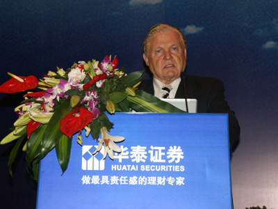 罗伯特·蒙代尔在主题演讲中认为,中国和美国应该联手,能够发行一个全球的刺激计划。