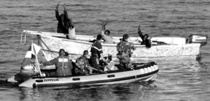 德新社援引丹麦海军发言人的话报道,一艘在荷属安的列斯注册的货轮2日遭海盗袭击。丹麦海军“阿布萨隆”号军舰收到求救信号后,派出一架直升机前往救援。直升机向海盗所在船只开火示警,遇袭货轮上的船员同时发出紧急信号弹。海盗船只中弹起火后,船上5人跳海逃生。“阿布萨隆”号船员救起这5名跳海者后击沉了起火船只,以免它威胁其他船只安全。 这名发言人说,5名获救的跳海者涉嫌参与海盗活动,将接受调查以确定接受何种处置。“阿布萨隆”号军舰去年9月进驻索马里附近海域的国际航道巡逻。