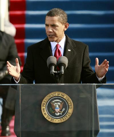 今天我站在这里,看到眼前面临的重大任务,深感卑微。我感谢你们对我的信任,也知道先辈们为了这个国家所作的牺牲。我要感谢布什总统为国家做出的贡献,以及感谢他在两届政府过渡期间给与的慷慨协作。 迄今为止,已经有44个美国总统宣誓就职。总统的宣誓有时面对的是国家的和平繁荣,但通常面临的是乌云密布的紧张形势。在紧张的形势中,支持美国前进的不仅仅是领导人的能力和远见,也在于美国人民对国家先驱者理想的信仰,以及对美国立国文件的忠诚。