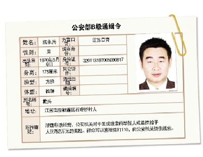 公安部门的通缉令也侧面证实了这一点。记者获悉,施永兵此前已遭通缉。公缉(2009)39部b级通缉令显示,施永兵出生日期为1970年5月8日,别名绰号即为戴兵,户籍地址在江苏南京市栖霞区石埠桥村河埂队64号,因“涉嫌非法经营案”而遭通缉。