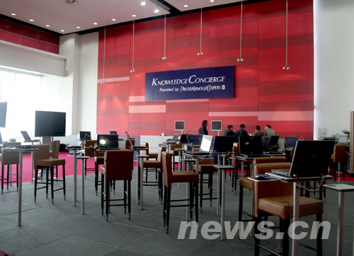 世界村设置了多个开放式区域供与会人士随意交流。新华网郭毅摄