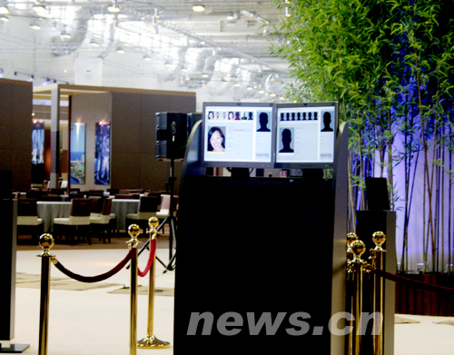 “世界村”入口处设置的安检系统。新华网郭毅摄