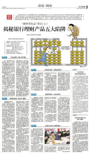 ▲本报3月5日见报的《揭秘银行理财产品五大陷阱》揭示了银行理财产品的诸多问题。