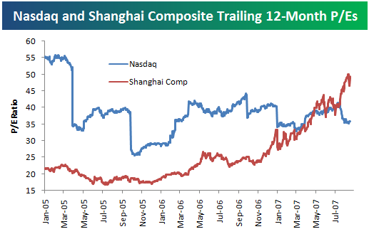 附:1)Nasdaq 和中国A股市盈率比较(07年8月)