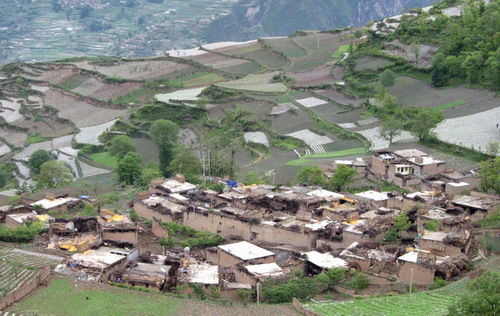 这是5月14日航拍的地震后汶川县农舍。新华社记者徐壮志摄