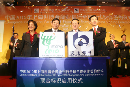 世博网11月18日消息:今天,上海世博会事务协调局与交通银行股份有限公司签订《中国2010年上海世博会商业银行全球合作伙伴协议》,交通银行成为中国2010年上海世博会商业银行全球合作伙伴。届时,交通银行将为这一全球性的博览盛会,提供优质高效的全球化金融服务。至此,2010年上海世博会的合作伙伴已达四家。