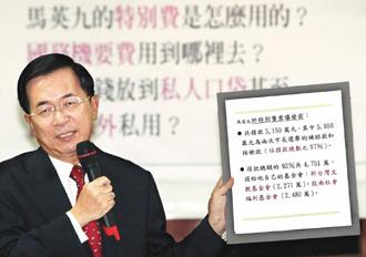 “但是,有人的特别费是直接汇入自己的帐户,并向‘监察院’申报,变成自己的钱!”他暗指马英九,如果特别费案没有爆发的话,“这些公款就变成他的私款。”