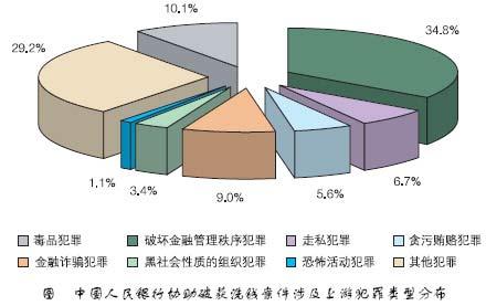 从破获洗钱案件涉及的上游犯罪类型进行分析,涉及破坏金融管理秩序犯罪的最多,约占总数的34.8%,其次是涉及毒品犯罪的,约占总数的10.1%。