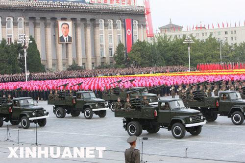 朝鲜庆祝建国60周年 日本共同社也从现场报道称,9日朝鲜迎来了建国60周年国庆日。首都平壤举行了阅兵仪式及市民庆祝游行,能容纳10万人的金日成广场人山人海。报道称,当地时间下午5时起,在首都平壤的金日成广场举行了由约8000名民兵组成的阅兵仪式。阅兵仪式上没有出现朝鲜人民军以及导弹、坦克等正规战斗武器,身为朝鲜最高领导人的金正日没有出席。