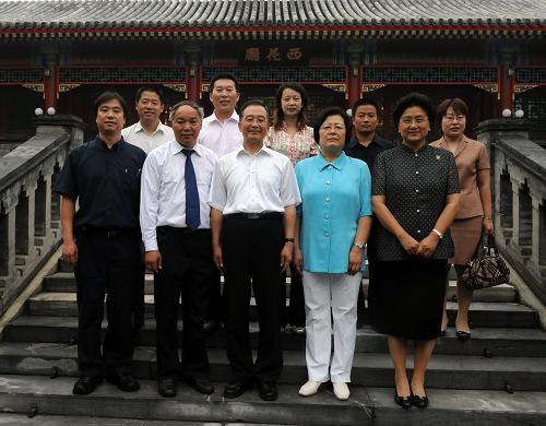 温家宝在中共中央政治局委员、国务委员刘延东的陪同下,和教师们一起参观西花厅。新华社记者 姚大伟 摄