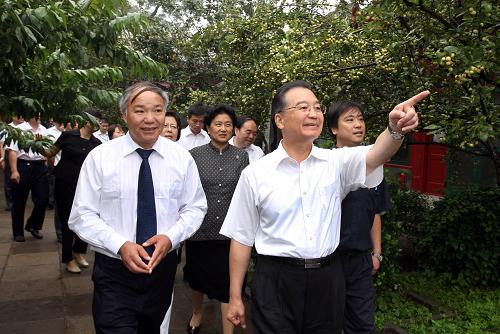 座谈会开始前,温家宝和8位教师一起参观了西花厅。