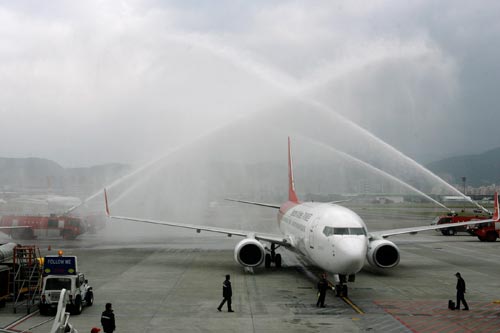 另据悉,两岸平日包机才加入的深圳航空,预定上午9点飞抵台湾松山机场,成为第一个报到的大陆航空公司。深圳航空特别派出副总裁陈龙及飞行部副总经理潘江双机长执行首航任务,座舱长为大陆航空首位、也是唯一的台籍座舱长曾怡纶,空姐们都穿上中国风旗袍,以台语引导旅客登机,空姐还会朗诵余光中的诗作“乡愁”伴旅客进入回乡旅程,餐饮也精心研发台湾口味闽南菜和点心。