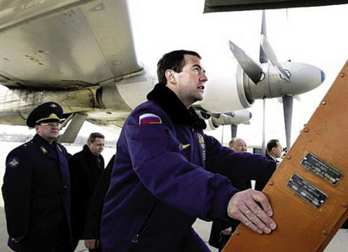 俄罗斯现任总理普京2005年身为总统时,乘坐一架图-160远程战略轰炸机体验战机飞行演习。普京身穿飞行服和海军服的画像在俄罗斯相当受欢迎。