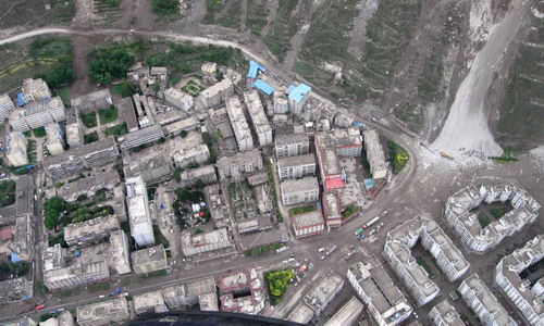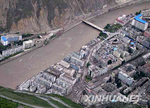 这是5月14日航拍的地震后汶川县县城。 新华社记者徐壮志摄