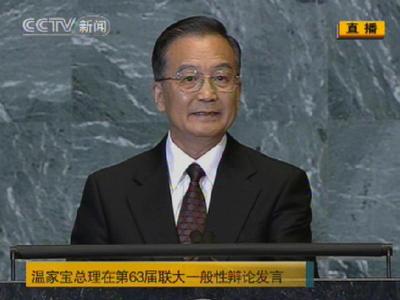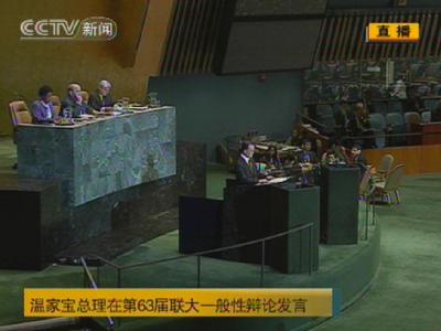中新网9月25日电 中国总理温家宝于纽约当地时间9月24日在第63届联合国大会一般性辩论上发言时表示,中国坚决捍卫来之不易的国家主权和领土完整,决不允许任何外来干涉。同时,中国坚持平等相待,尊重别国的主权和领土完整,尊重各国人民自主选择的社会制度和发展道路。